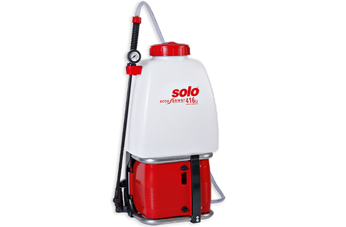 Die Akku-Spritze 416 Li von SOLO besitzt einen starken Elektroantrieb und ist somit die richtige Wahl, wenn es um den Pflanzenschutz in Gärten oder Gewächshäusern geht.
