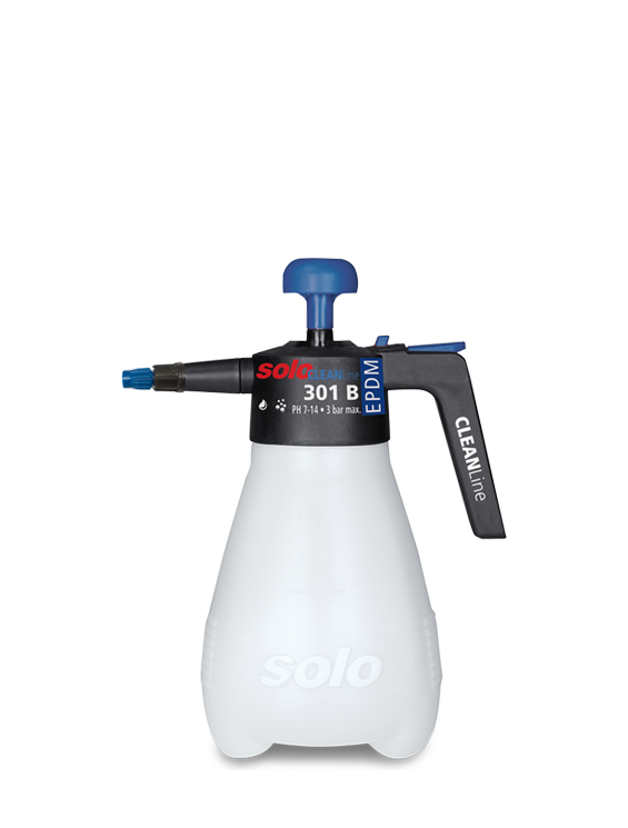 The SOLO 305 B and 307 B CLEANLine pressure sprayers, on the other hand, are fully equipped with EPDM sealing materials and are therefore suitable for neutral and aggressive cleaning agents in the alkaline range. The large pump of the CLEANLine pressure sprayers builds up the max. pressure of 3 bar quickly and sustainably.