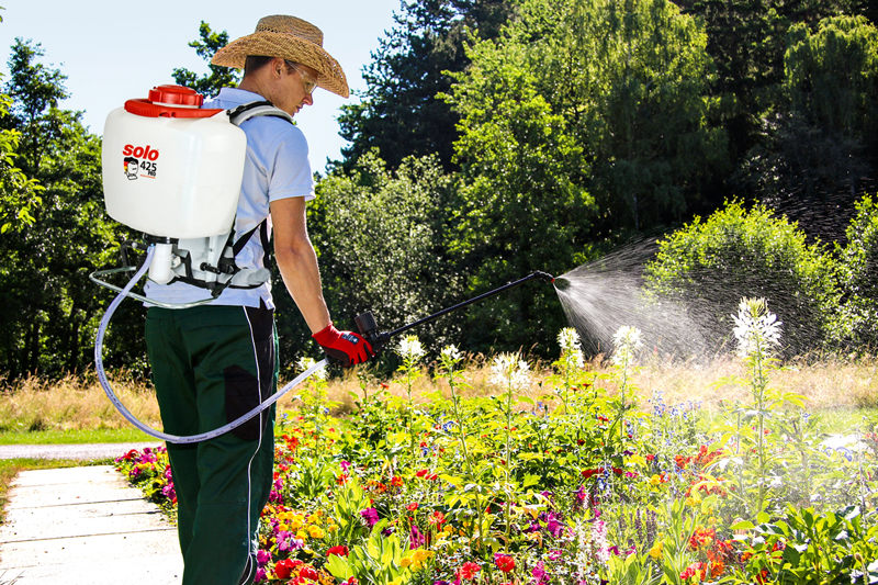 You should choose the right pump or power option for your intended application. The backpack sprayers with piston pump, such as the SOLO 425 and 435, are more suitable for applying thin spraying agents. The diaphragm pump models, on the other hand, like the SOLO 473 D and 475 backpack sprayers, are used mainly for thick, abrasive agents that are sprayed at low pressure. If you want to work without any manual pumping, you should opt either for the 417 or 416 Li battery-operated backpack sprayers or the 433 power sprayer. The SOLO 433 power sprayer achieves a maximum pressure of 30 bar, which means a long range can be achieved. You can therefore spray the agent efficiently even on higher areas, such as espaliered and standard trees and large shrubs. Battery-operated sprayers, on the other hand, are waste-gas-free and extremely quiet, making them perfect for large-scale applications in enclosed spaces. Of course, battery-operated sprayers can also be used outdoors.