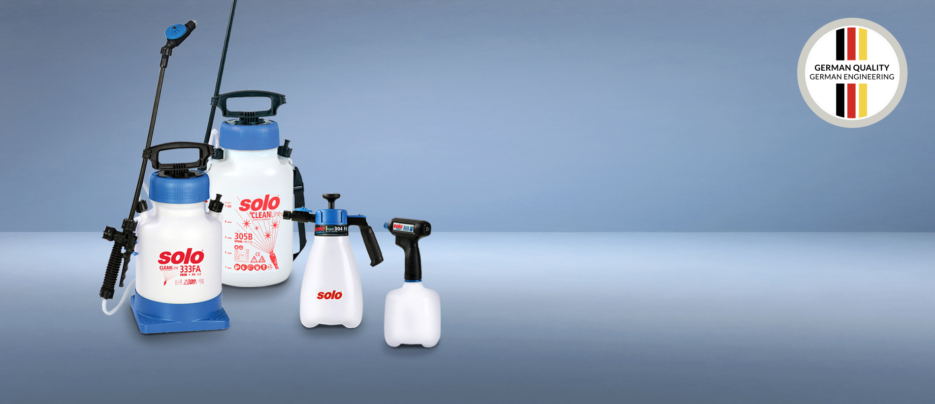 Ein vielseitiges Gerätesortiment für professionelle Reinigung und Desinfektion – im Innen- und Außenbereich, im Haushalt ebenso wie bei der Fahrzeugpflege. Besonders beim Einsatz chemisch aggressiver Reinigungsmittel zeigen die SOLO CLEANline Sprüher mit ihren speziell abgestimmten Dichtungen und Komponenten, was echte Profiqualität ausmacht.